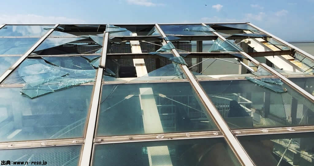 リゾ鳴尾浜は鳴尾浜臨海公園海づり広場に面して温泉や室内野外プールを楽しめるウォーターパーク施設でありますが、大型台風の影響によって建物のガラスが大きく破損したりしました。そして、台風21号による高潮によって、大量の漂流物が館内外になだれ込んできたため駐車場の利用もリゾ鳴尾浜の利用も不可となる事態になりました。