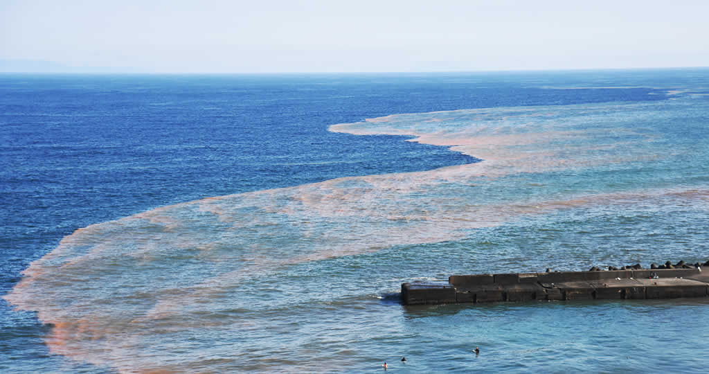 しかし、夜光虫というと綺麗で美しい神秘的な良いイメージでありますが、これは夜光虫の夜の姿です。夜光虫は動物性プランクトンの一種でありますので、もちろん昼間に見かける「赤潮」の原因であるという一面もあります。夜の姿では生きている夜光虫が外的刺激によって青白く発光して美しい印象がありますが、昼間や多くの方が嫌がる「赤潮」として発生しています。