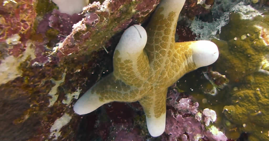 もはやネタとしか言えない凄まじい迫力のカワテブクロヒトデですが、神様のイタズラと言いたいくらいのアレに似ている外見です。普段は岩場などに張り付いたりもたれかかったりしているカワテブクロヒトデですが、腕を曲げたときのシワの出来具合とかもアレに似ているし、確信的ですね。しかも、このカワテブクロヒトデの生態も確信的レベルです。