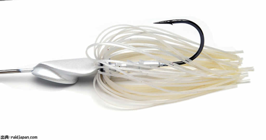 レイドジャパンのマスタブラスタPEARL WHITE(パールホワイト)は、光の差し込みが良く透き通った水質の時などにはよく目立つカラーとなっており、ペラからの光の反射によってもスカート部分を目立たせる効果があるカラーです。