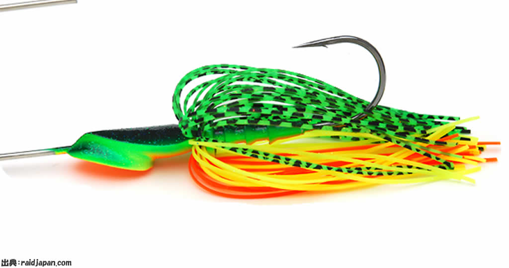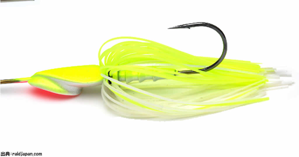 レイドジャパンのバズベイトはその正式名を「MASTERBLASTER(マスタブラスタ)」と呼び、その重量は約12gと大きめでありますが操作性や着水時の立ち上がりの早さが大きな魅力です。一見するとレイドジャパンのバズベイトは他社製品とあまり外見的の違いがよくわからないかもしれませんが、レイドジャパンの特徴として扱いやすさというものが群を抜いています。